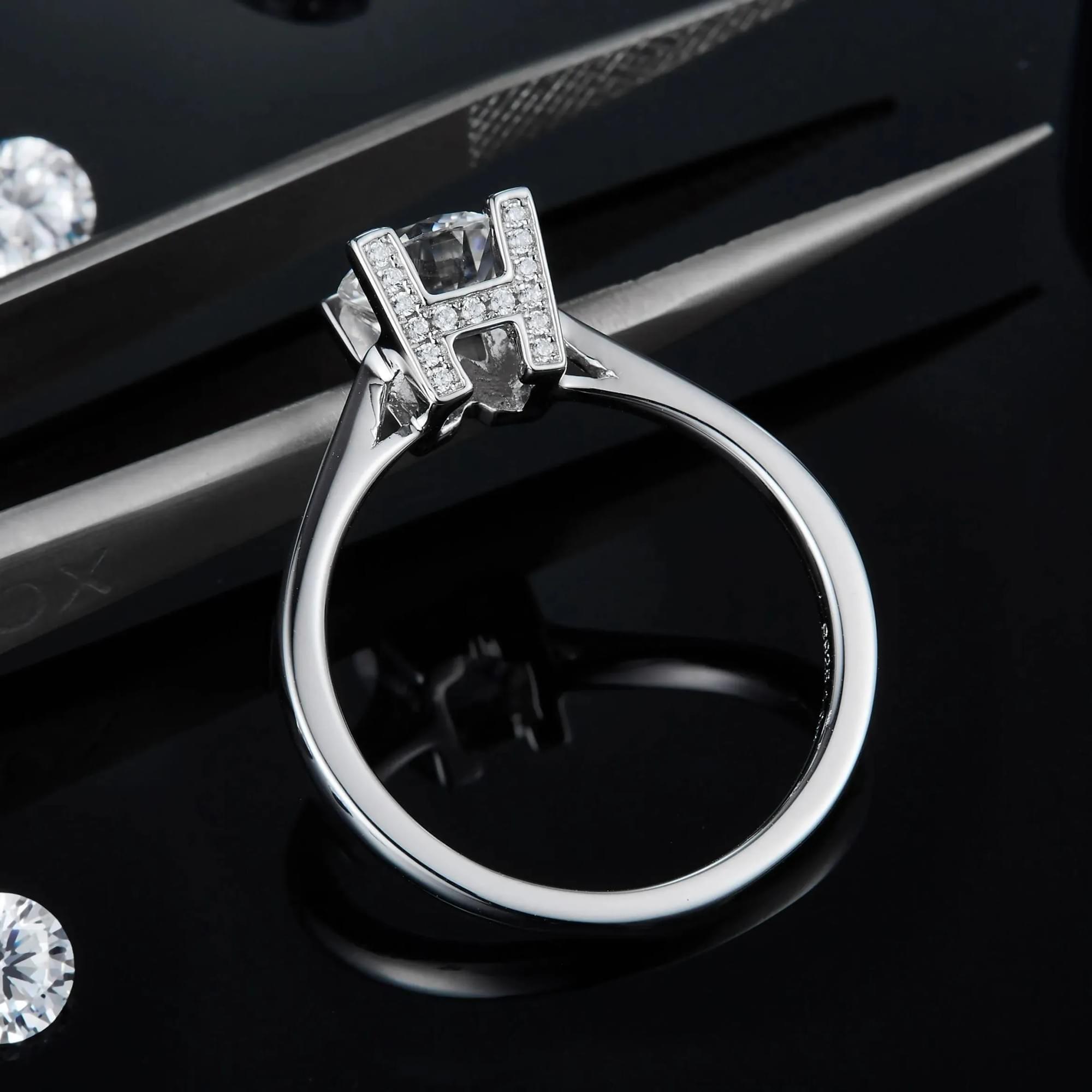 DEDEJILL H&W Letter S925 Silver Platinum-Plated Moissanite Women's Ring - 1ct D Grade